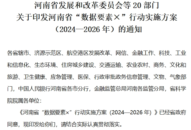 河南省發(fā)展和改革委員會等20部門 關(guān)于印發(fā)河南省“數(shù)據(jù)要素×